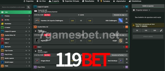O 119bet oferece uma grande seleção de opções de apostas em e-sports com probabilidades competitivas